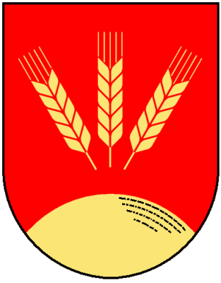 oben drei goldene Ähren, unten goldener Hügel im auf rotem Grund